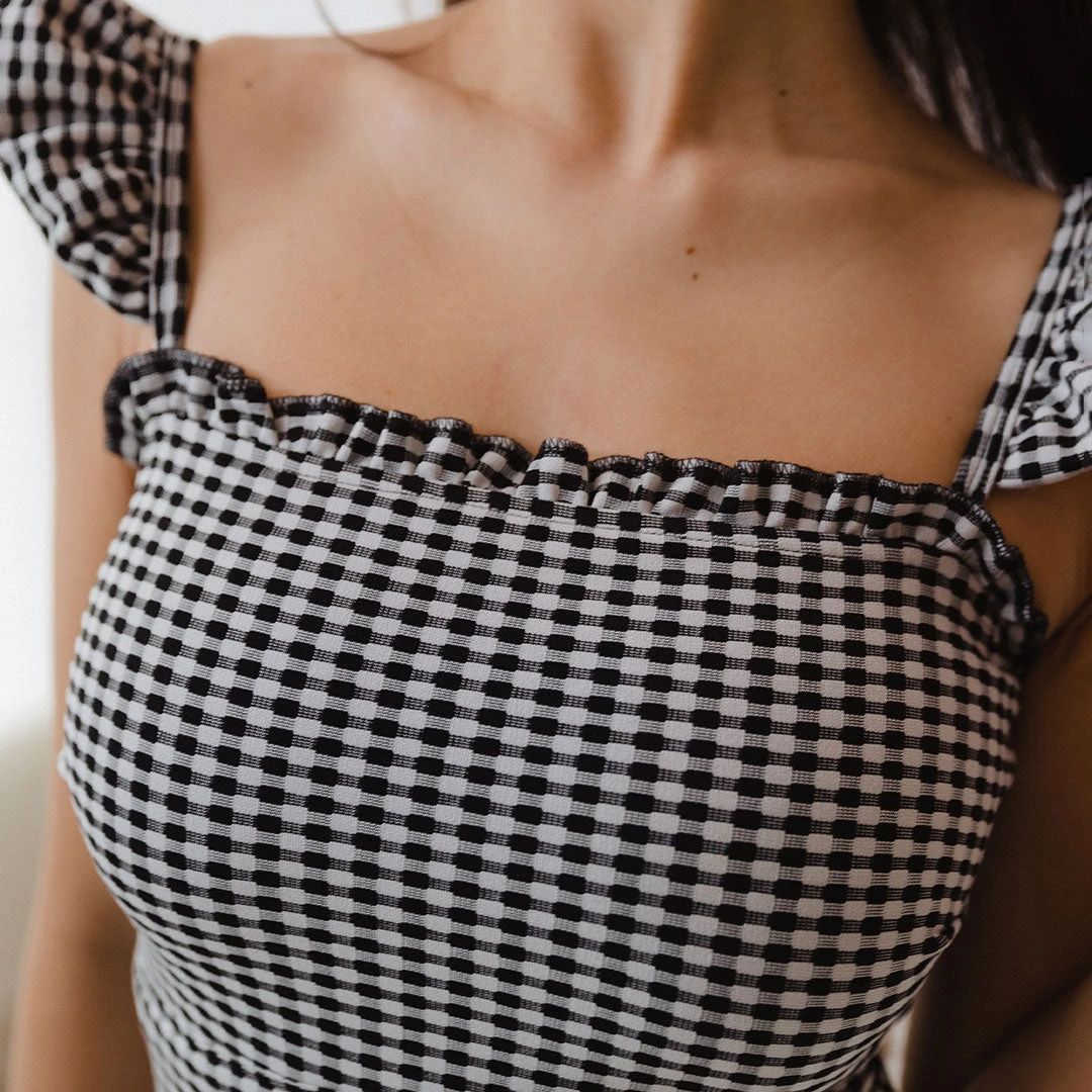 It’s girly. It’s gingham. It’s our Hampton One-Piece! We love this suit’s dainty ruffle sleeves and ruffle neckline. Sport this swim to the pool, beach, or brunch with a coverup!