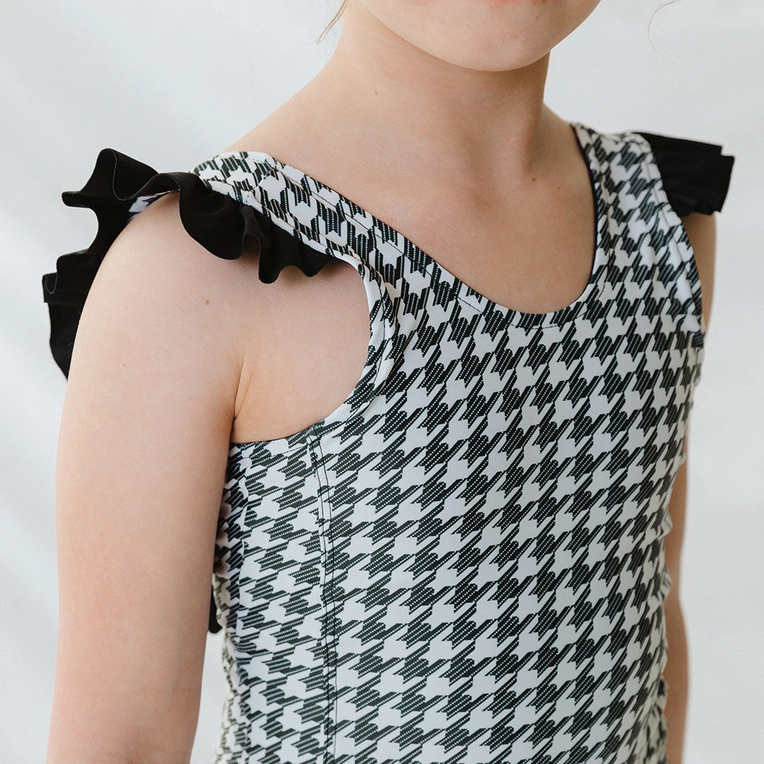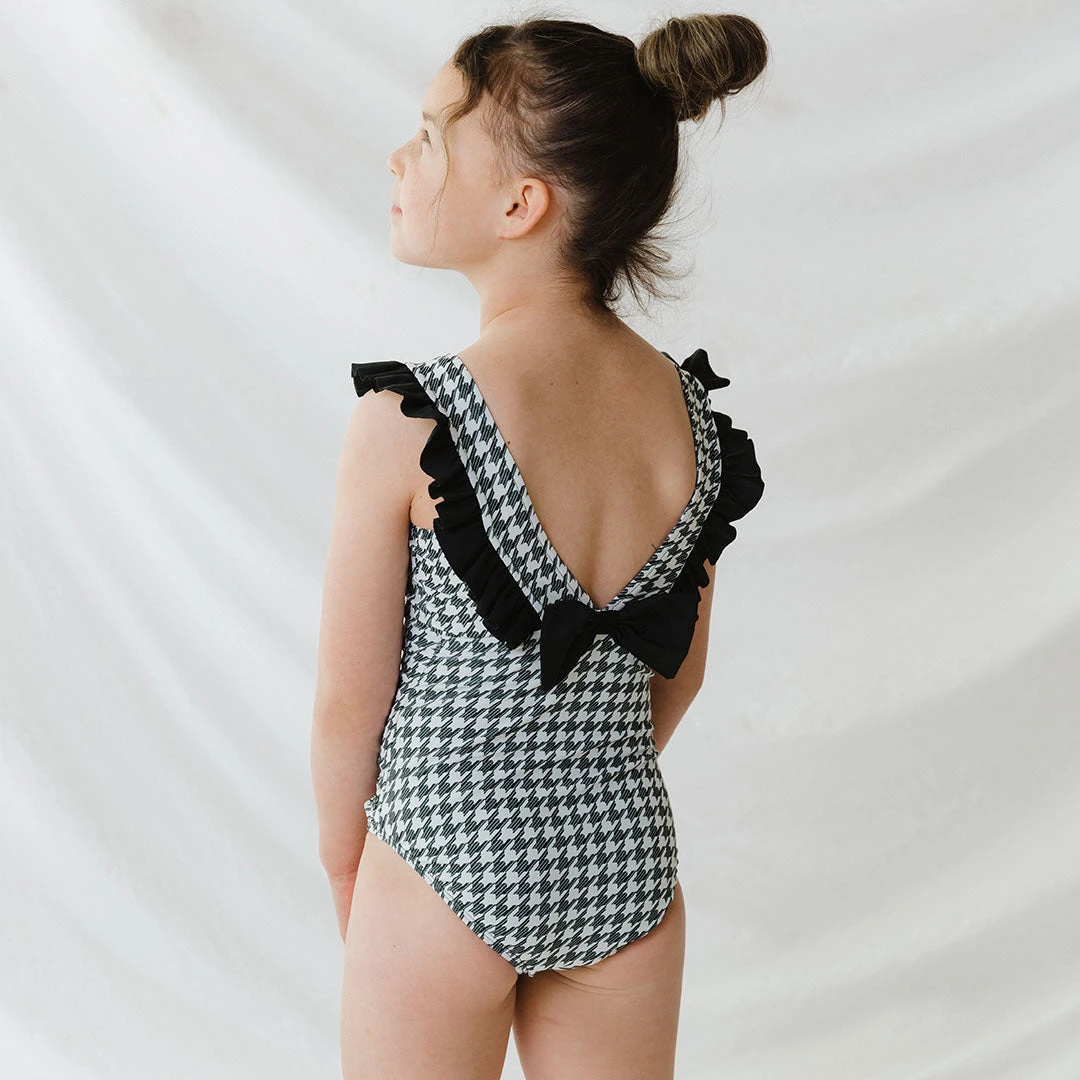 This one piece houndstooth swimsuit makes for one stylish looking little with a timeless print and statement ruffles. Oh and bonus: There’s a set for you too! Coordinate with your little and make family pics dreams come true.