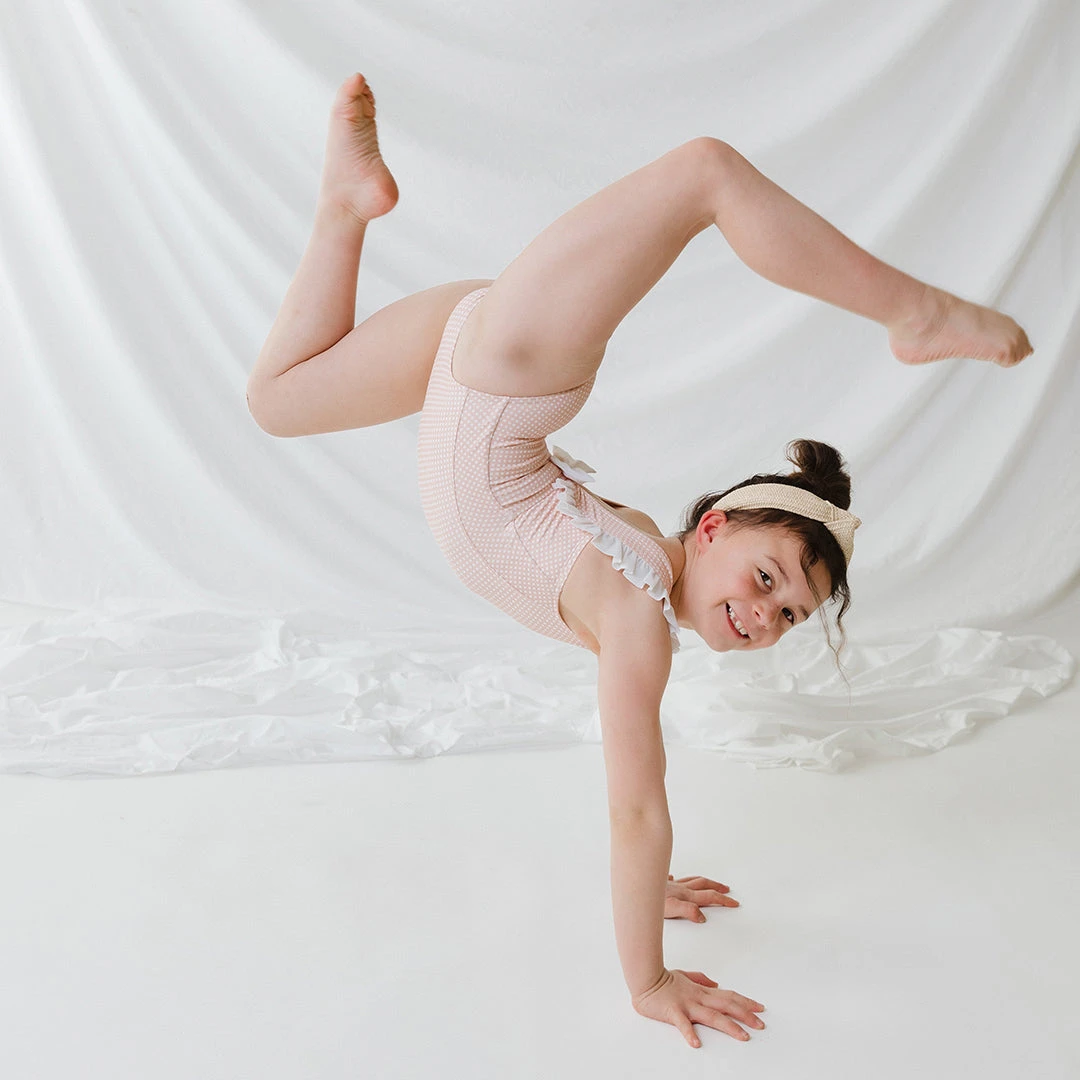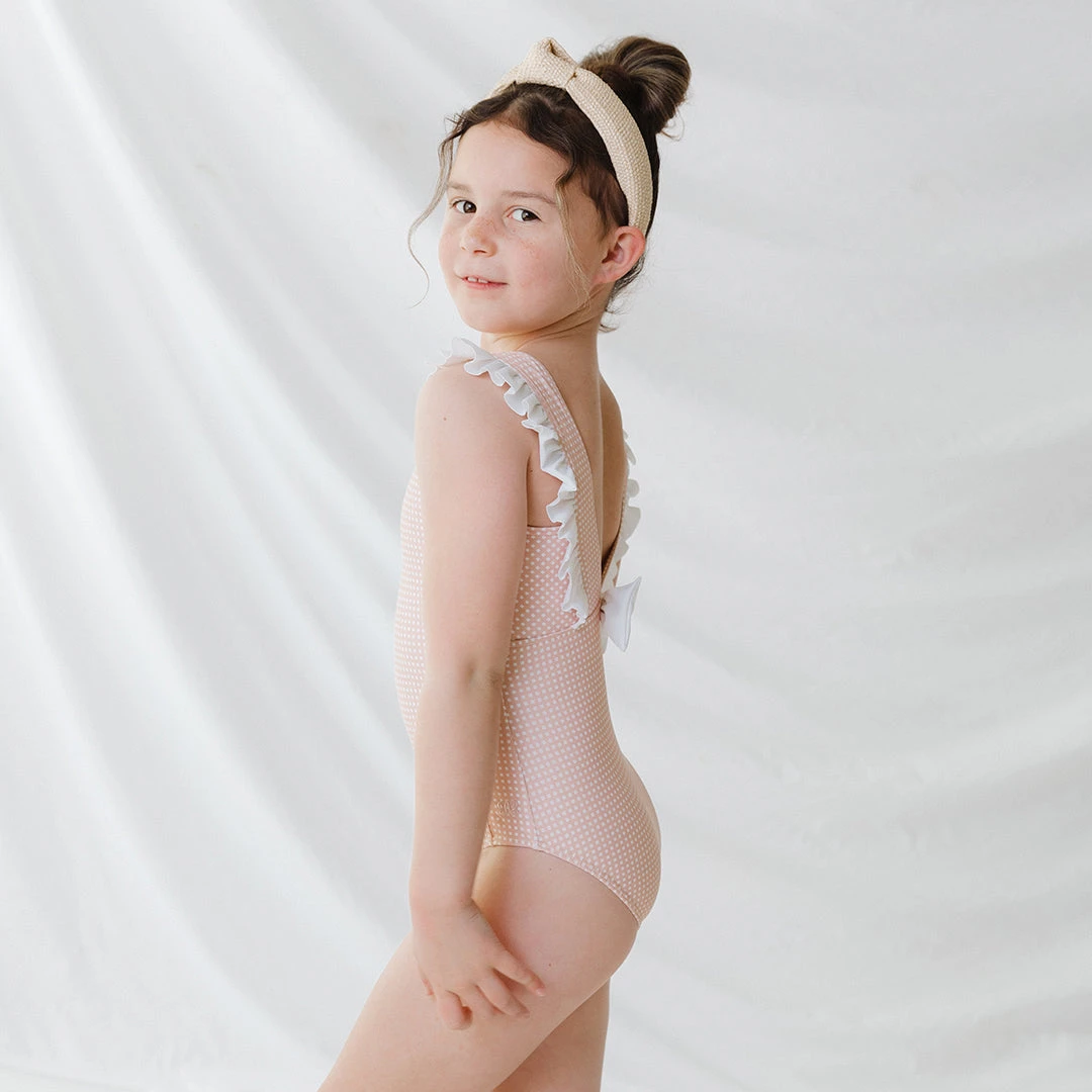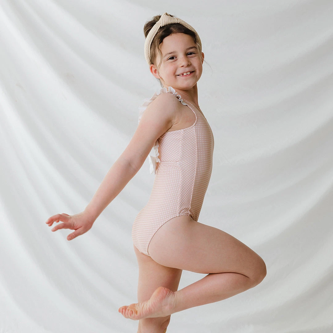Sugar and spice and ruffles and pink checks make this one piece set the perfect match for a little that wants a little style along with a lot of play. Coordinate with your little and take pics that will last a lifetime with a grown up set of your own.