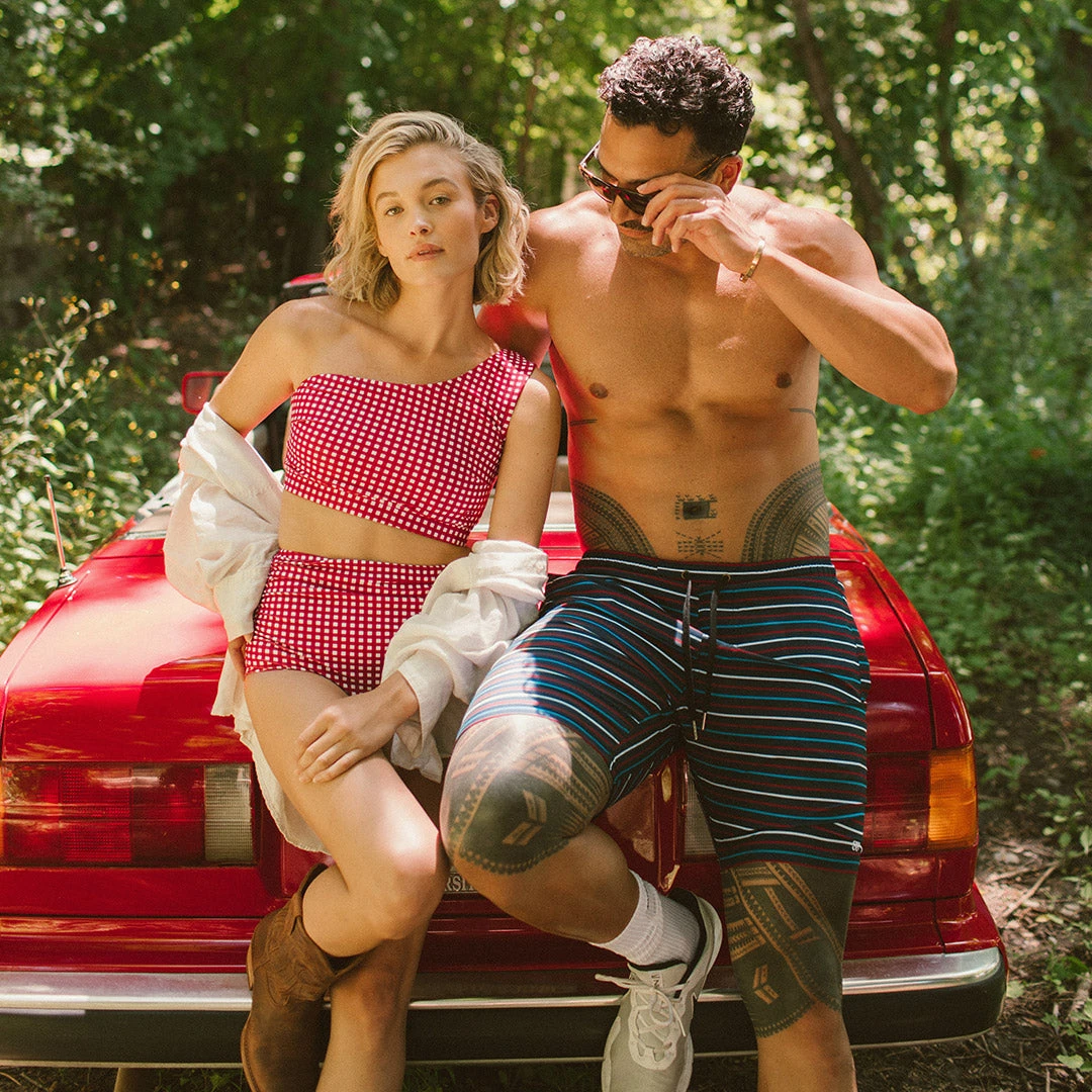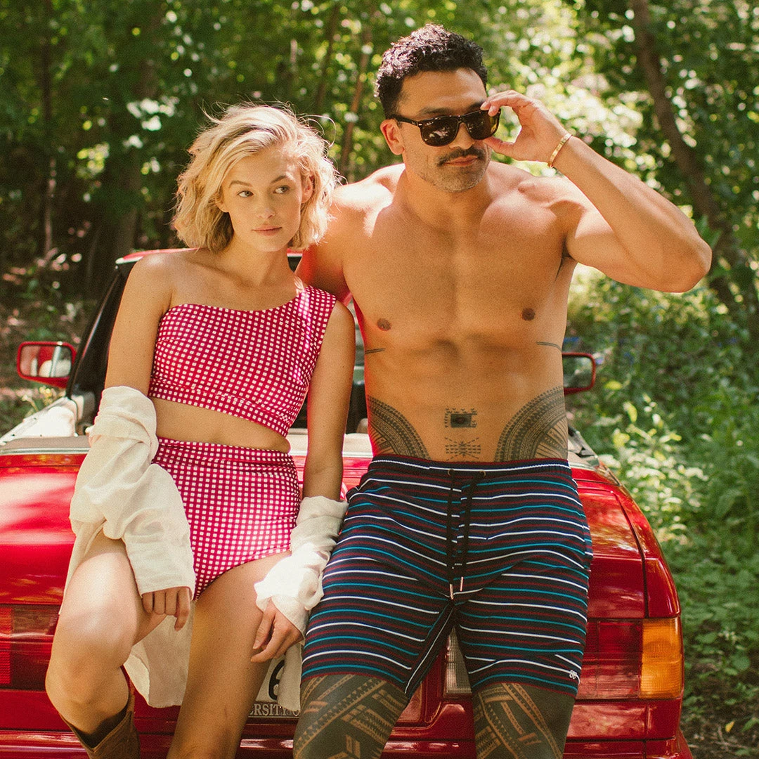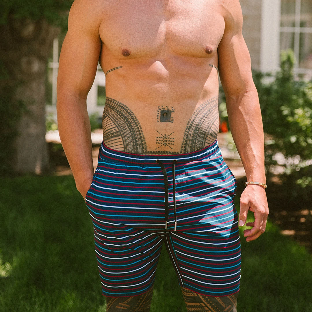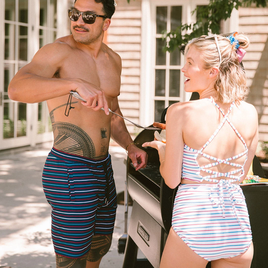 With a blue base for the guys, these shorts are an amazing coordinating match for families who want to celebrate the Fourth of July in matching swimsuits! Team up with our